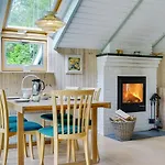 Oltre a un caminetto, la Holiday Home Nadezda - 450M From The Sea In Lolland- Falster And Mon By Interhome comprende un televisore. La villa dispone di un bagno con un bagno alla francese e una doccia.